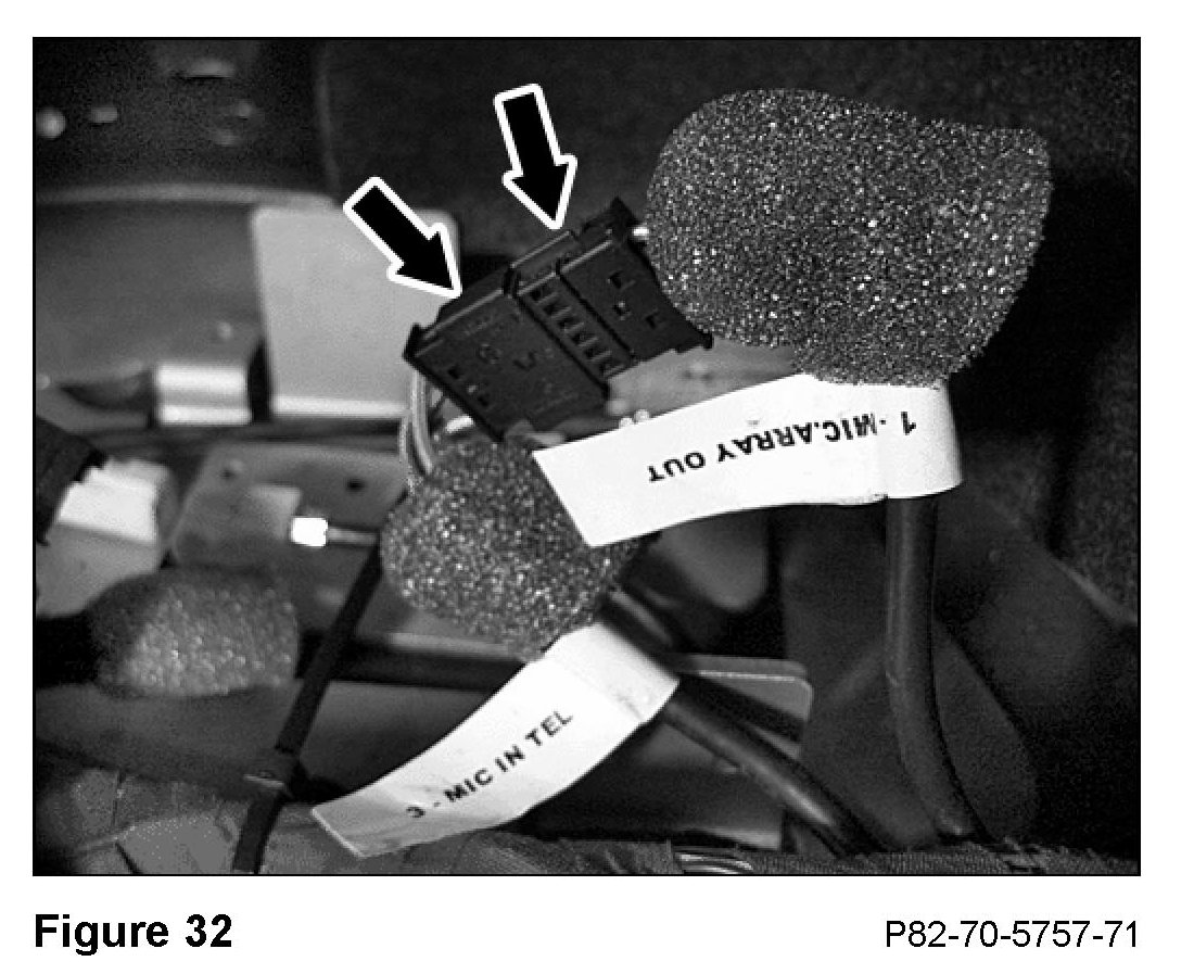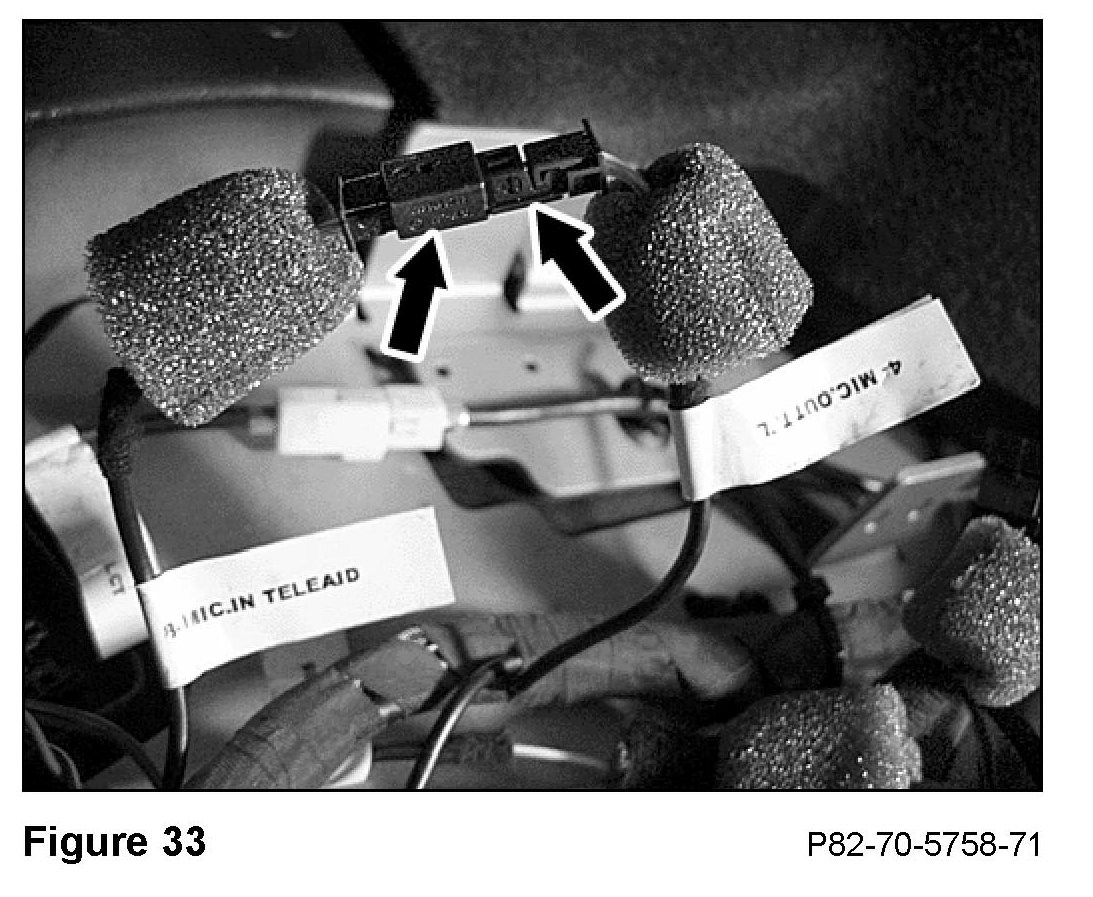 3. Connect the 2-pin female connector labeled "4 - MIC.OUT TEL" to the 2-pin male connector labeled "8 - MIC.IN TELEAID") (Arrows, Figure 33).