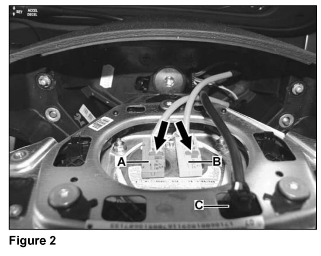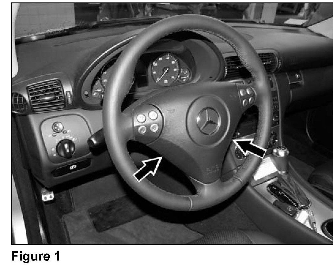 3. Remove two screws (arrows, Figure 1) located in back of steering wheel.