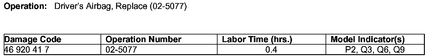 ^ The following allowable labor operation should be used when submitting a warranty claim for this repair: