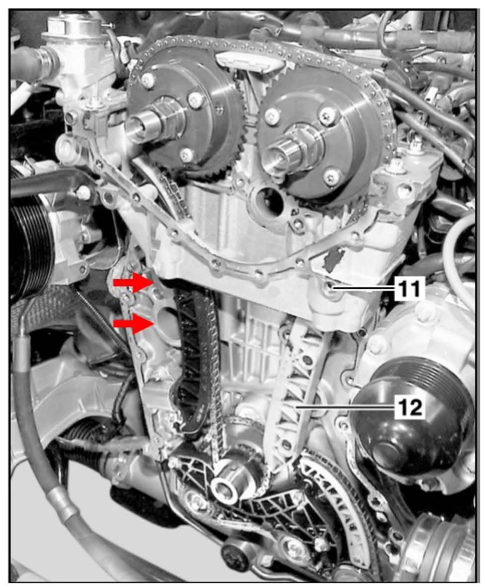 3. Check whether coolant emerges at the relevant separation point between the timing case cover and the crankcase.