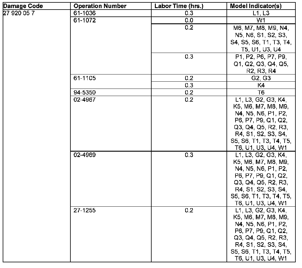- The following allowable labor operation should be used when submitting a warranty claim for this repair: