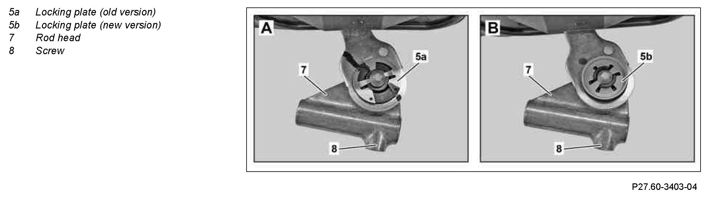 The new version locking plate (5b) may not be replaced.
