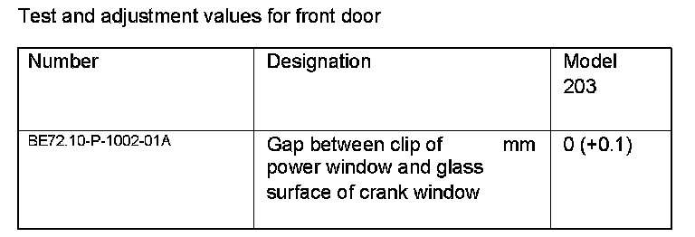 Test and Adjustment Values for Front Door: