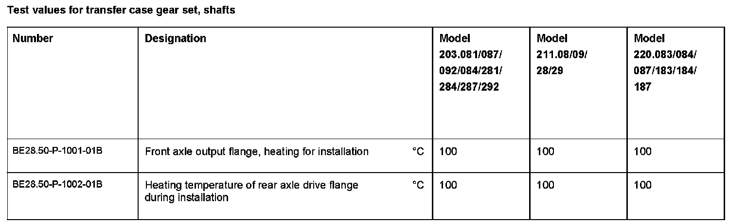 Test Values For Transfer Case Gear Set, Shafts: