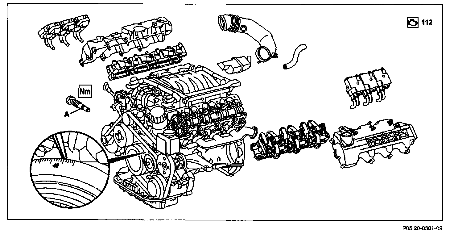 - Rotate engine at crankshaft in direction of rotation until 40 degrees marking on belt pulley/vibration damper is aligned with marking on timing case cover.