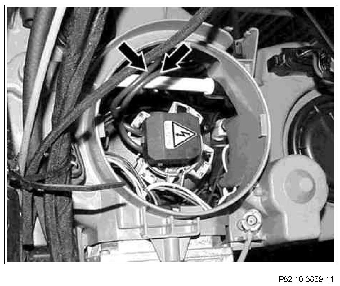 3 Cut off electrical connector at ignition device of xenon bulb as close to ignition device as possible (arrows).