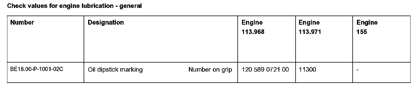 Check values for engine lubrication - general:
