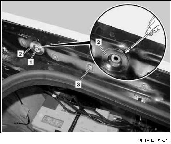 2. Carefully pry out sheet metal disc (2) with screwdriver.