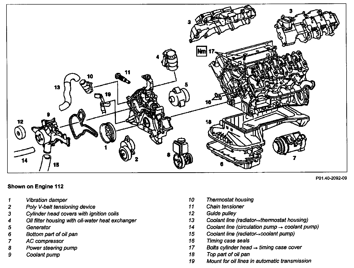 25 Remove coolant pump (9) at timing case cover