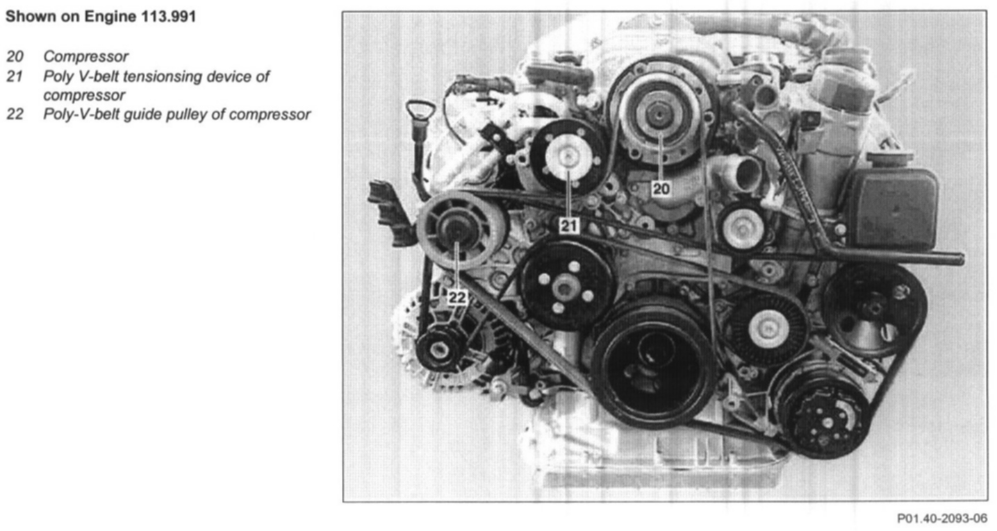 18 Remove poly V-belt tensioning device of compressor (21)