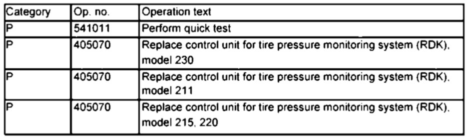 - model 230.### ## as of 004300 up to 026960 with CODE (475) Tire pressure indicator