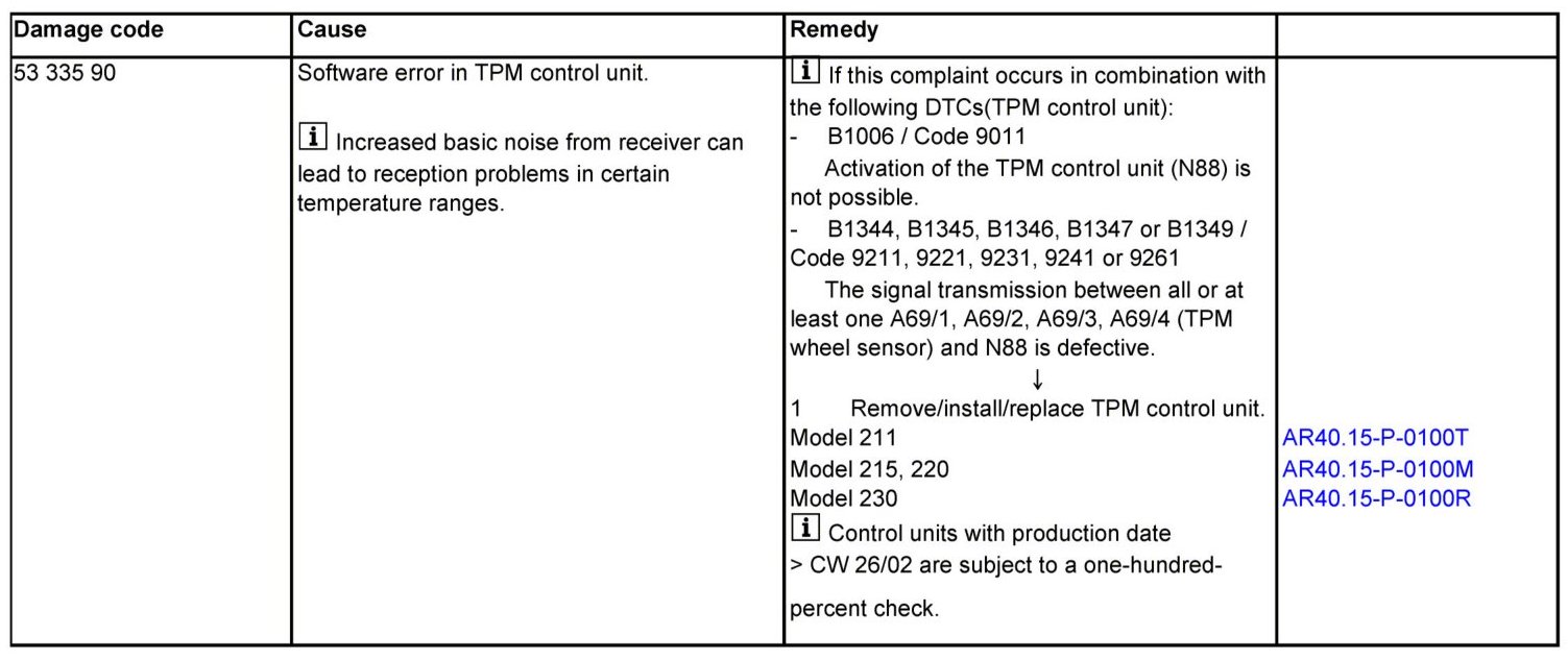 AF40.15-P-6103A Fault In Instrument Cluster (KI) "Check Tire Pressure - Visit Workshop"