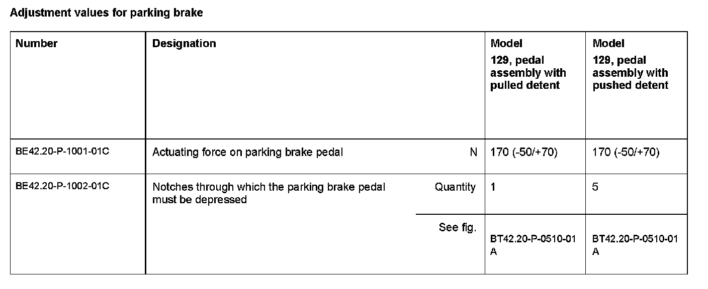 BE42.20-P-1000-01C Parking brakeAdjustment Values For Parking Brake: