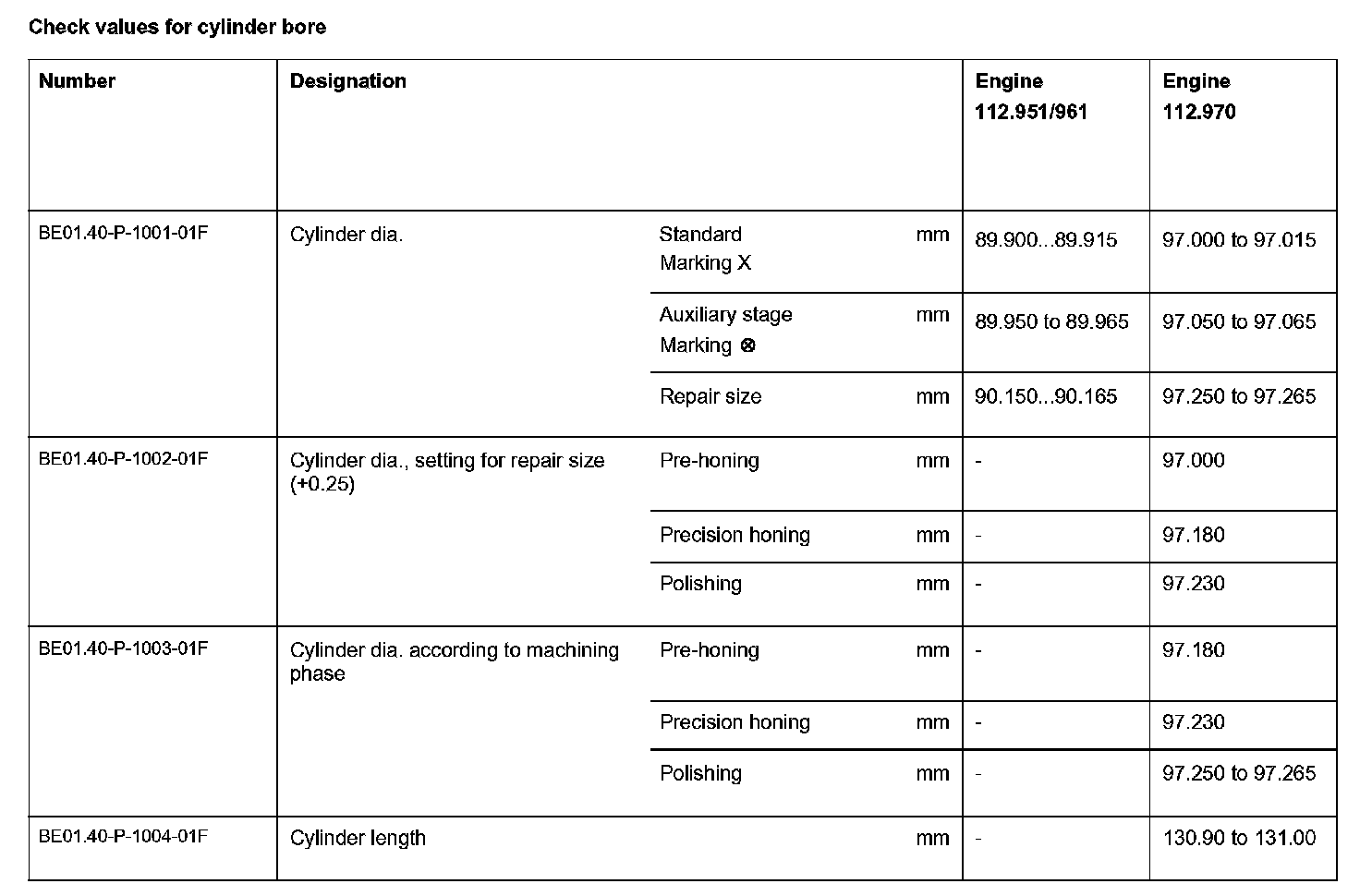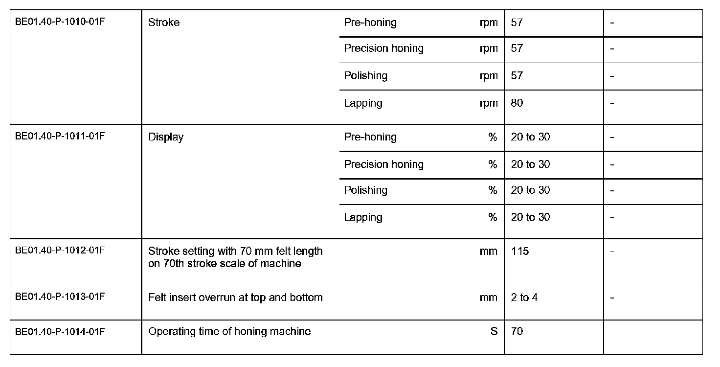BE01.40-P-1000-01F Check values for cylinder boreCheck values for cylinder bore: