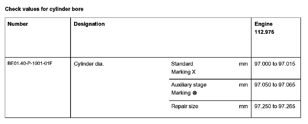 Check values for cylinder bore: