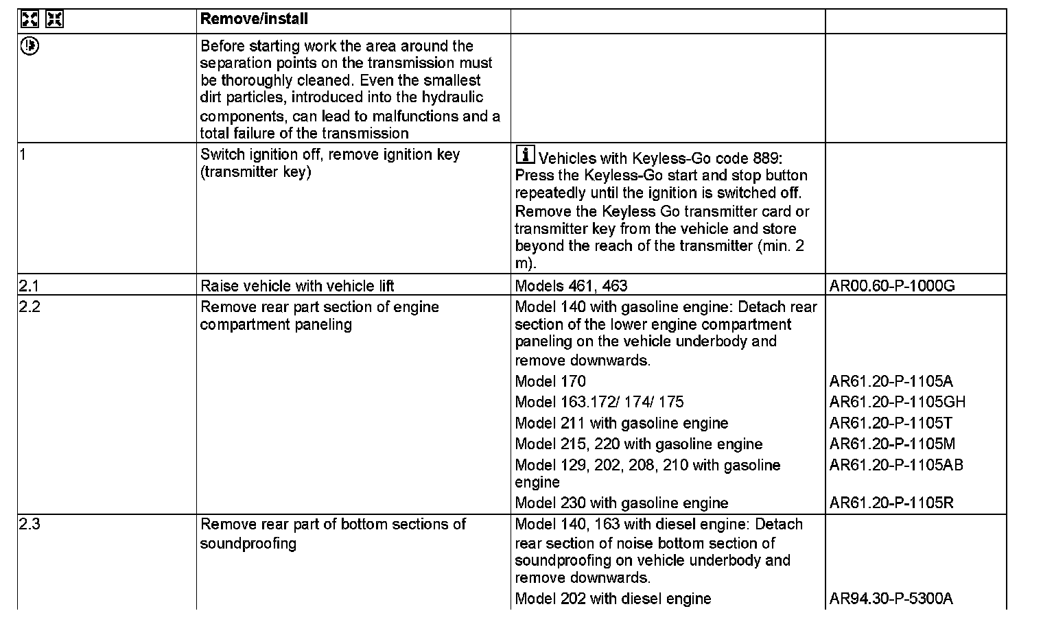 TRANSMISSION 722.6 in MODEL 461, 463 (except 461.331, 463.270 /271)