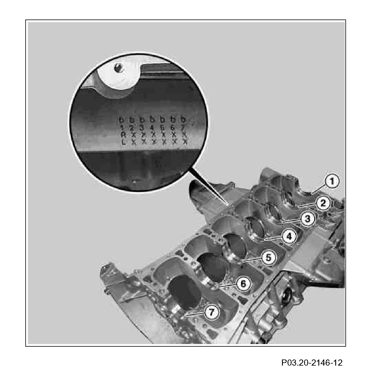 The cylinder bore diameter is specified in two tolerances. The two tolerances of the cylinder bore diameters are distinguished by the letters x and 0.