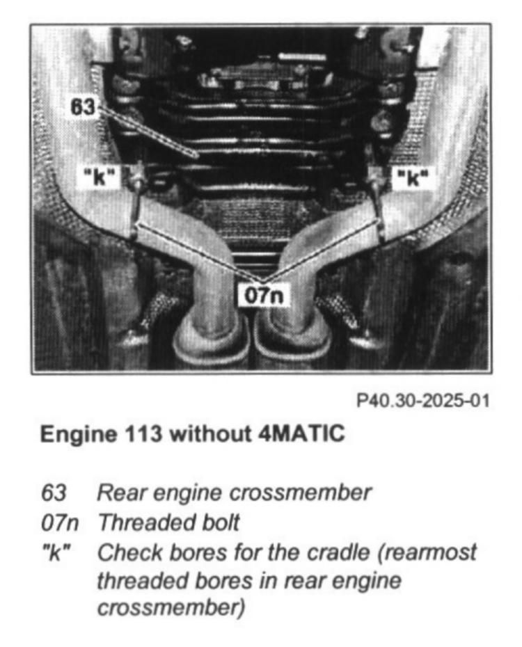 7 Screw in bolts for rear engine crossmember (63) on both sides