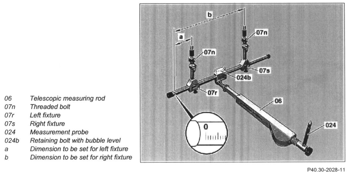 4 Install telescopic measuring rod (06) on retaining bolt (024b) with connecting parts