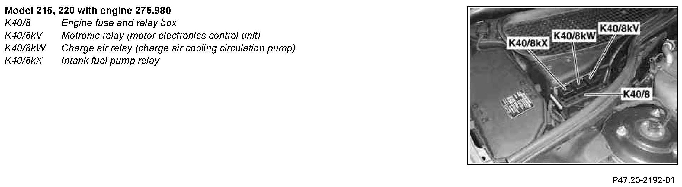Model 215, 220 from right front fuse and relay module (K40/7)