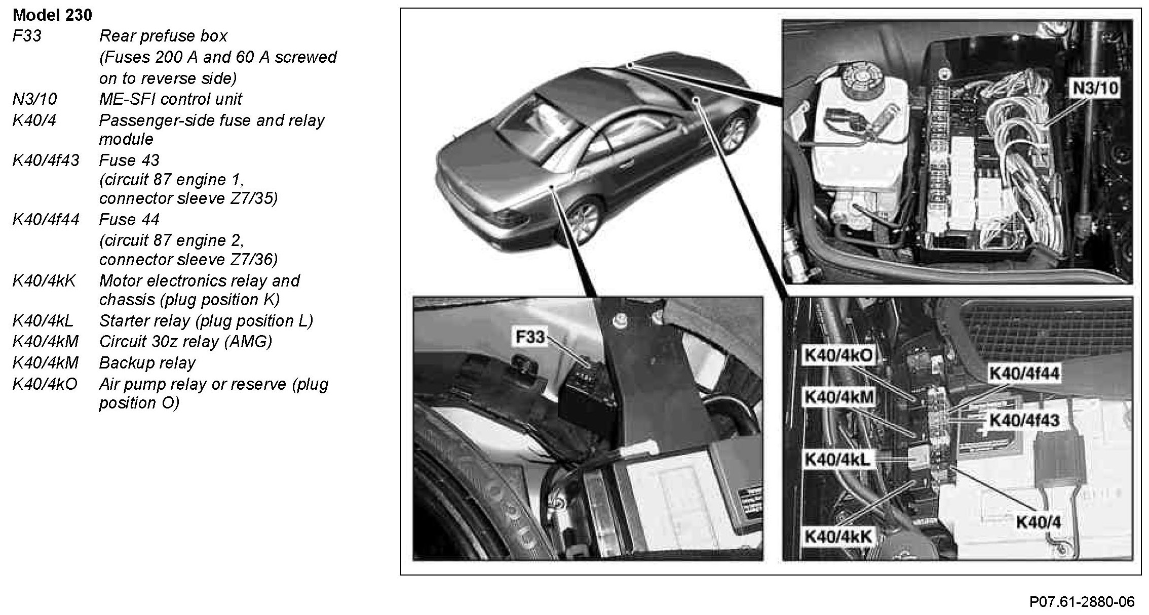 Model 230 from passenger-side fuse and relay module (K40/4)
