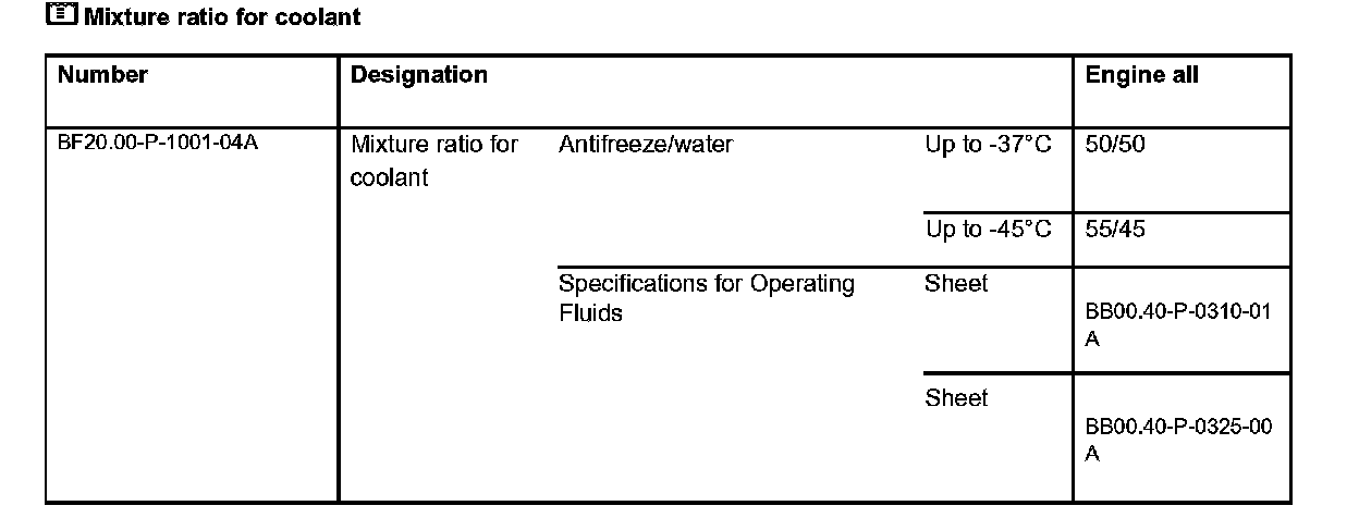 Mixture ratio for coolant: