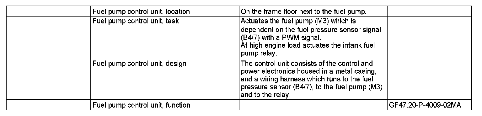 GF47.20-P-4009MA Fuel Pump Control Unit, Location/task/design/function
