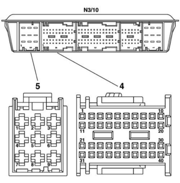 - Unplug the socket 5 at component N3/10 (ME-SFI control module).