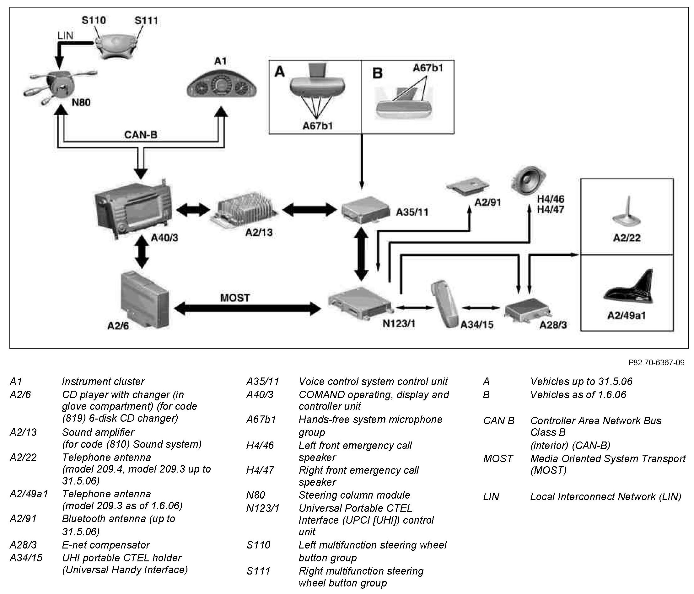 For this purpose, the portable CTEL requires an interface to the Media Oriented System Transport (MOST), which is implemented through the Universal Portable CTEL Interface (UPCI [UHI]) control unit (N123/1).