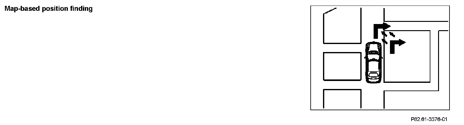 Map-based position finding is only available in the digitized area of the DVD map. By comparing the calculated position of the vehicle with the DVD map, the deviation can be recognized and corrected automatically.