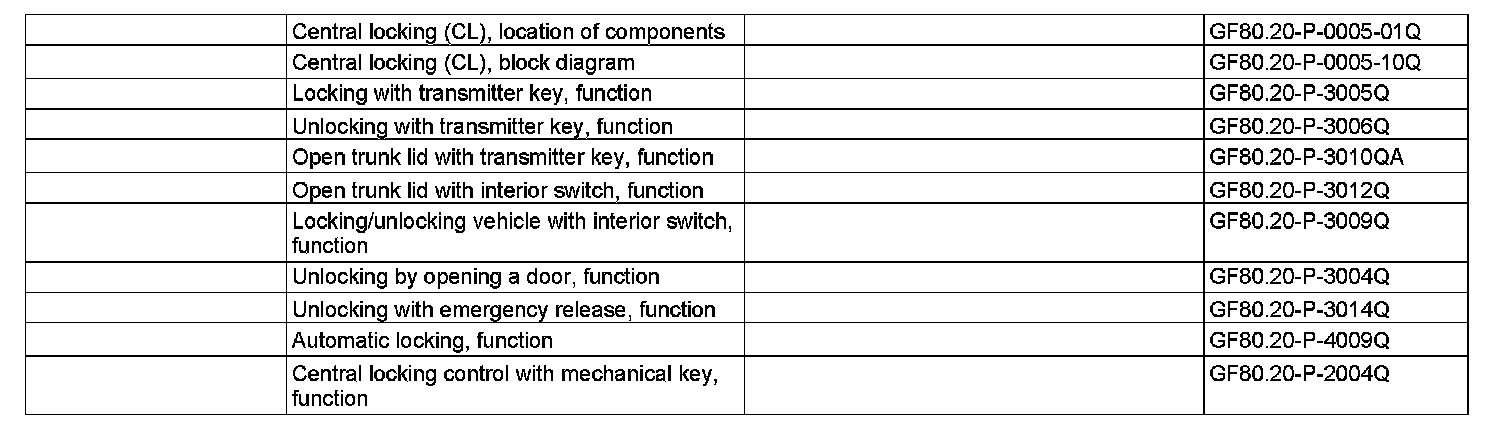 GF80.20-P-0005Q Central Locking (CL [ZV]), Function