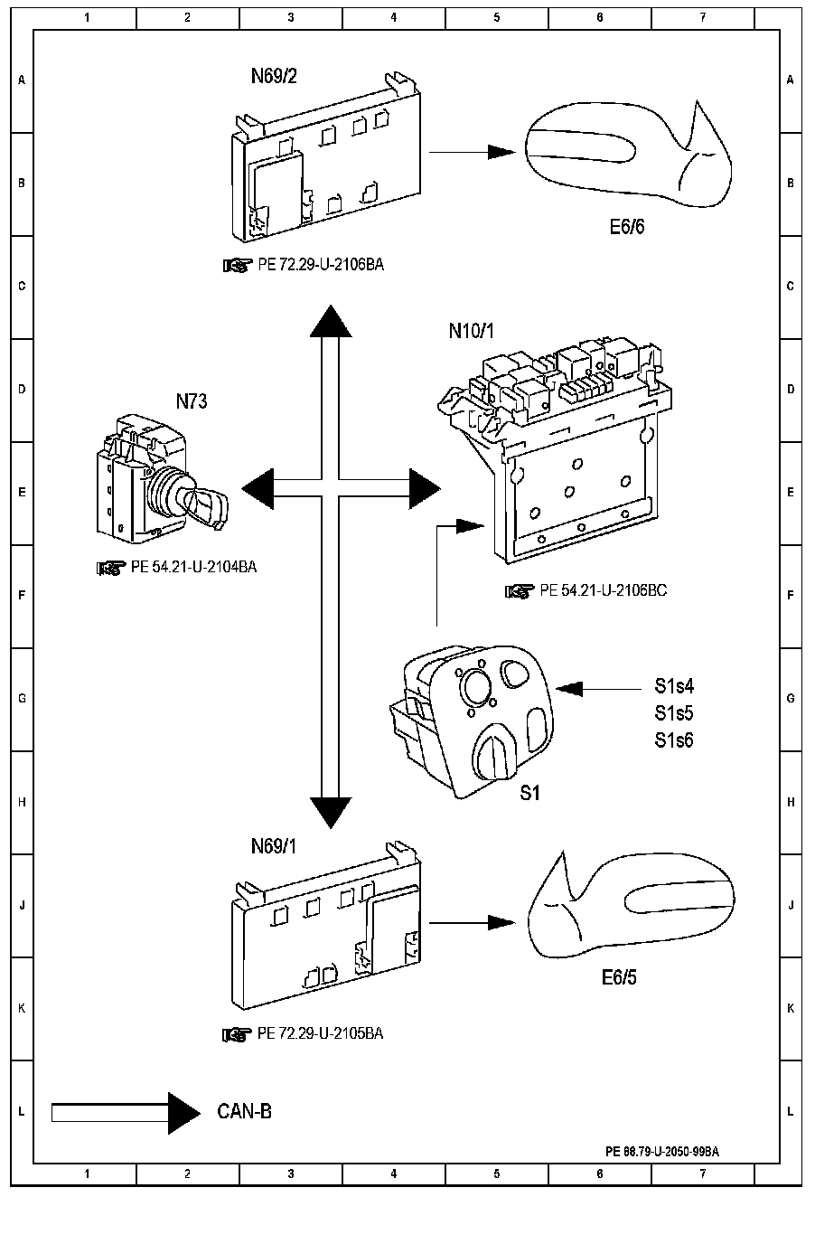 Function Schematic For Mirror Adjustment Electrical System PE88.79-U-2050BA