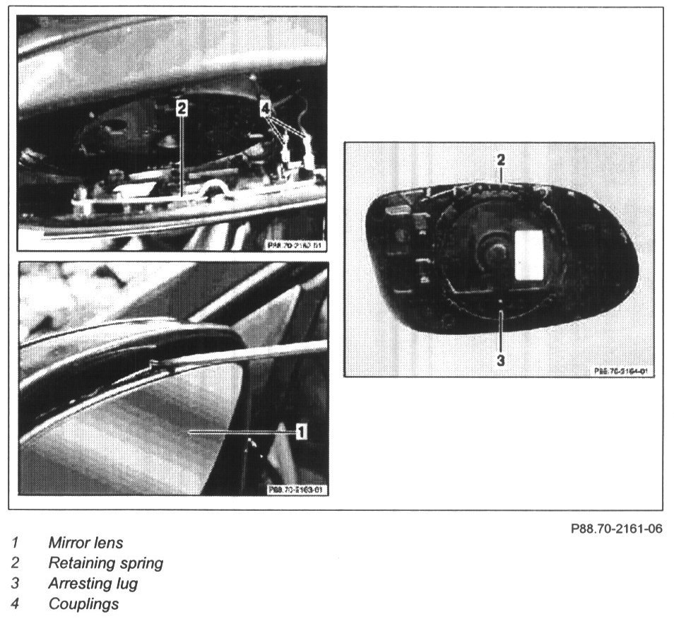 Installation: First insert arresting lug (3) of mirror glass (1) into glass adjustment drive