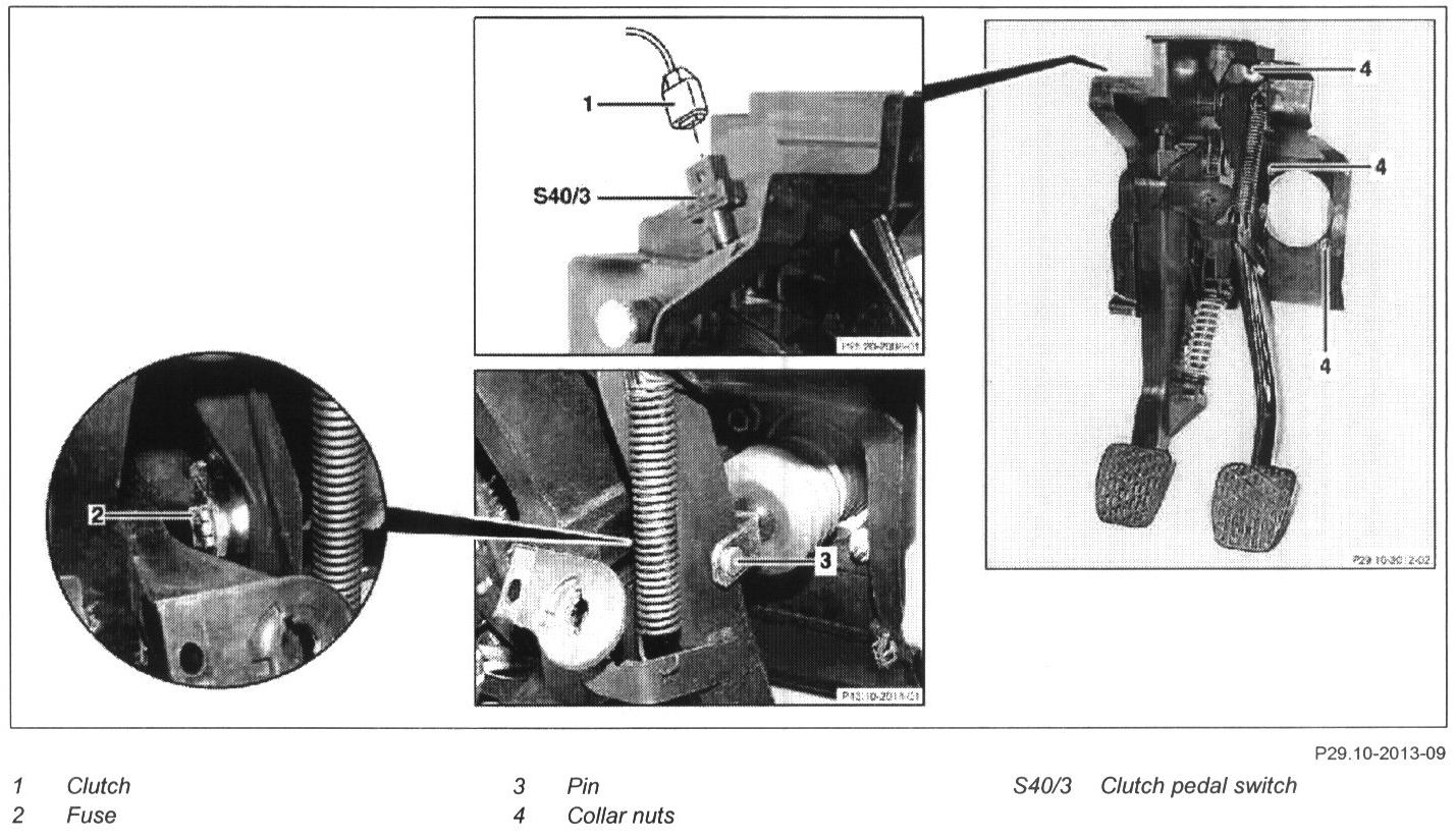 11 Disconnect coupling (1) from clutch pedal switch (S40/3)
