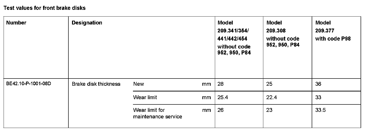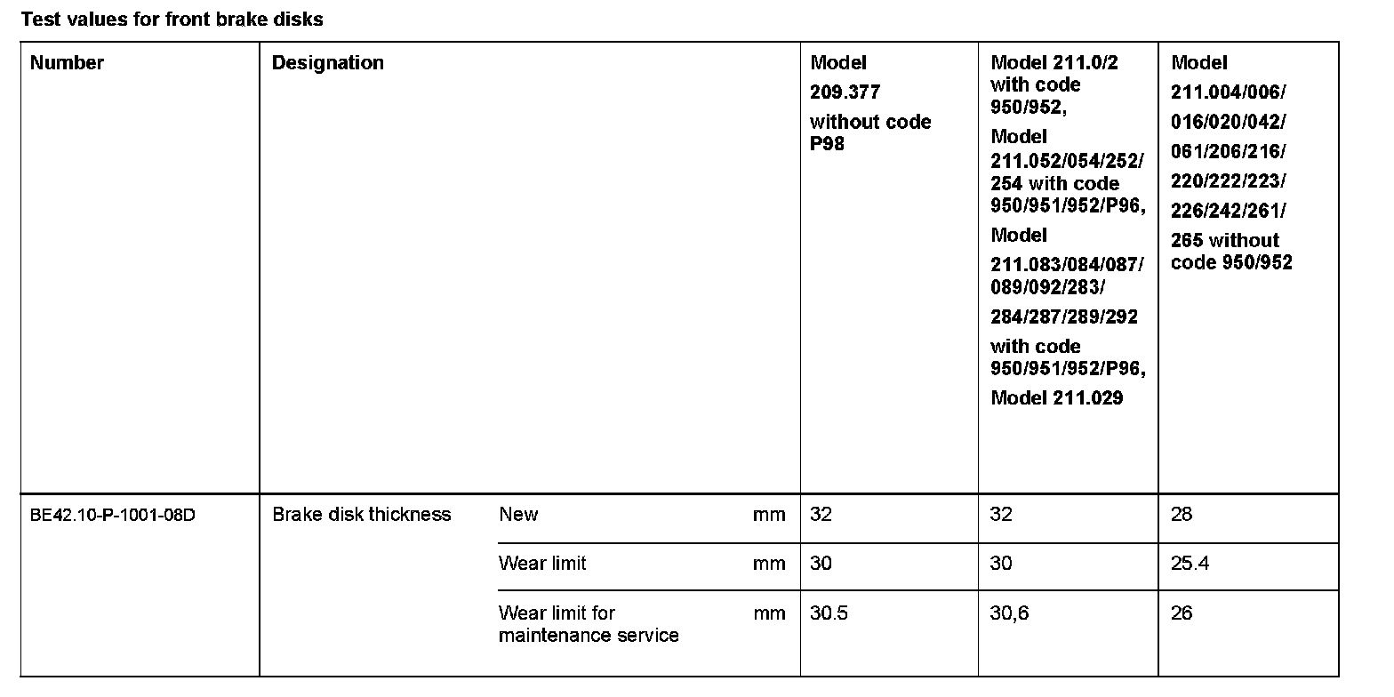 BE42.10-P-1000-08D Test values for front brake disksModification Notes: