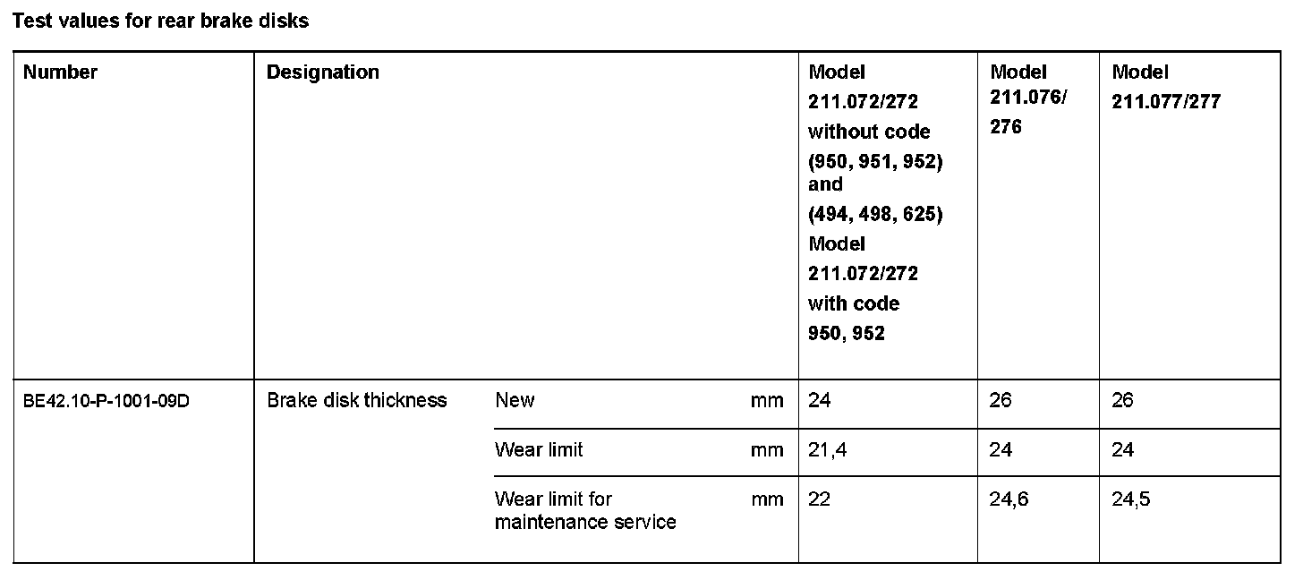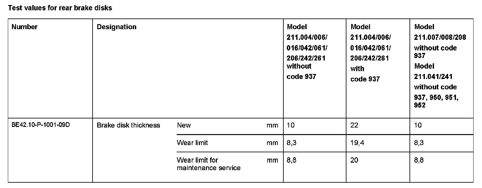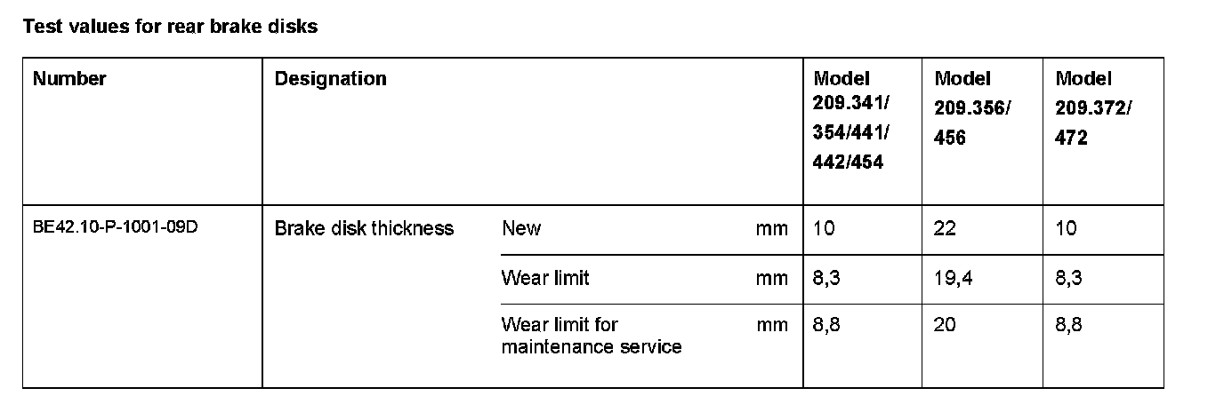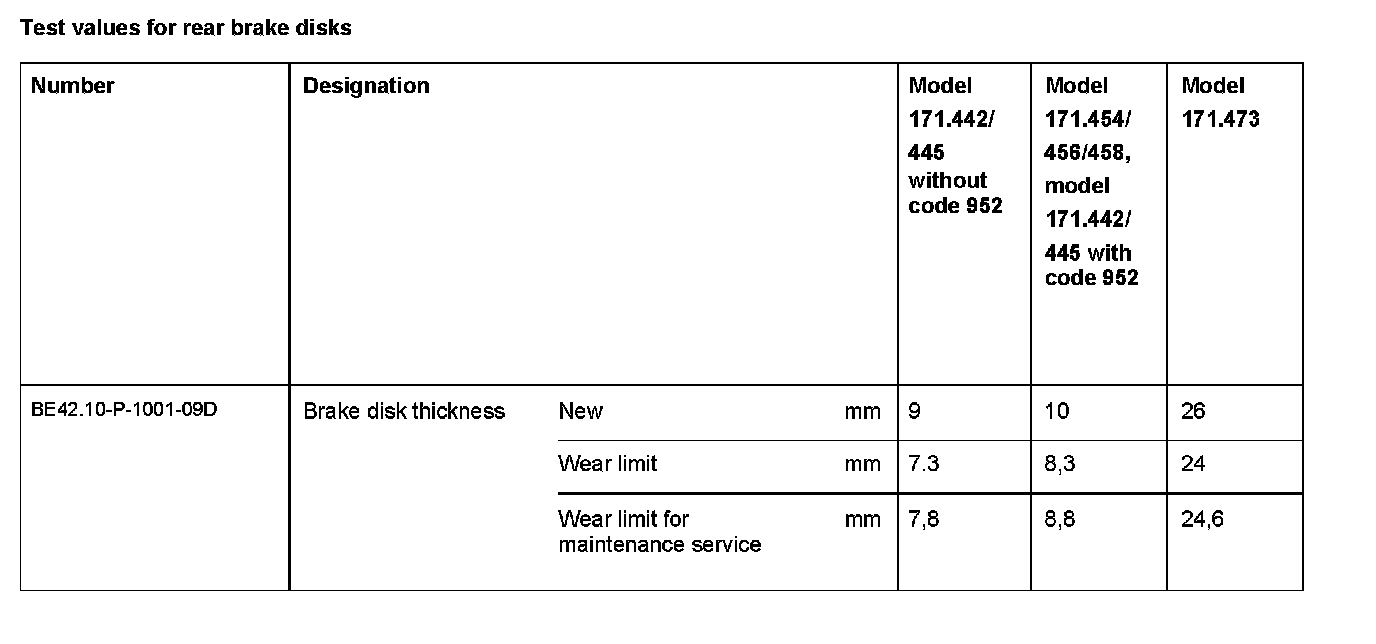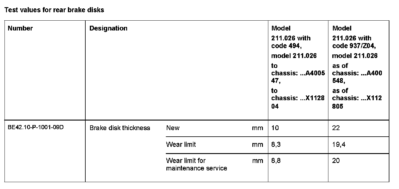 BE42.10-P-1000-09D Test Values For Rear Brake Disks