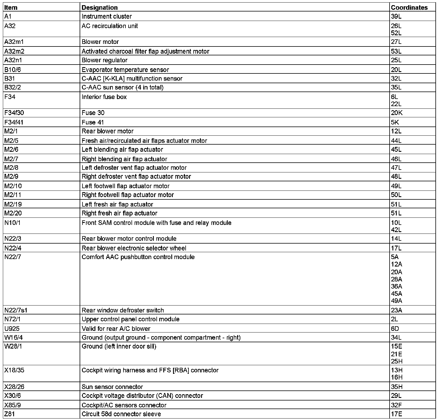 - with CODE (581) Automatic air conditioning control module N22/7