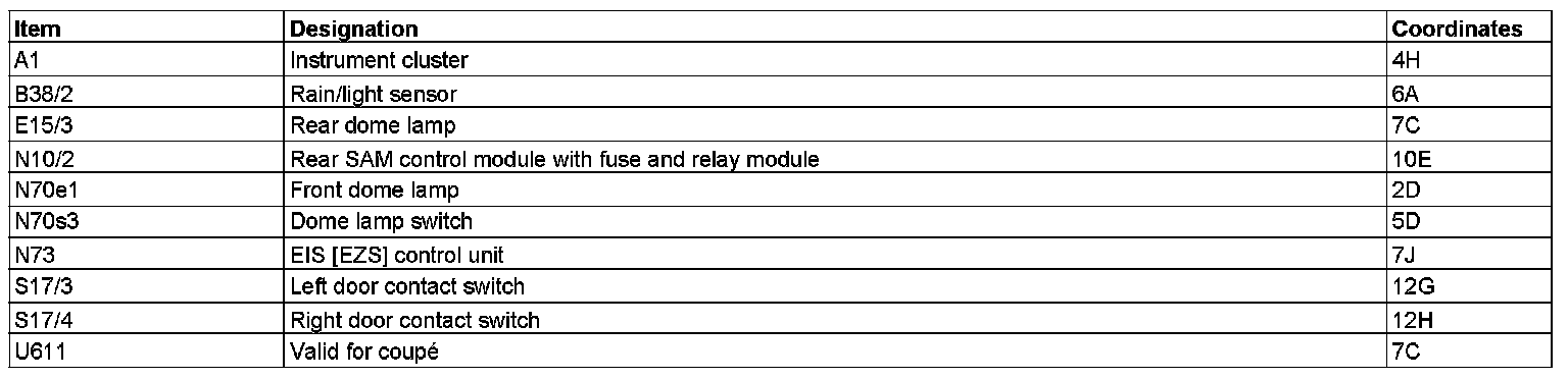 Function Diagram For Interior Lights PE82.20-U-2050BA