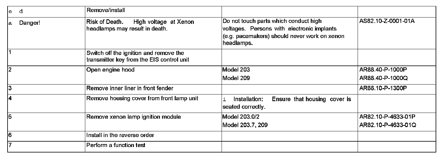 AR82.10-P-4633P Remove/Install Xenon Lamp Ignition Module