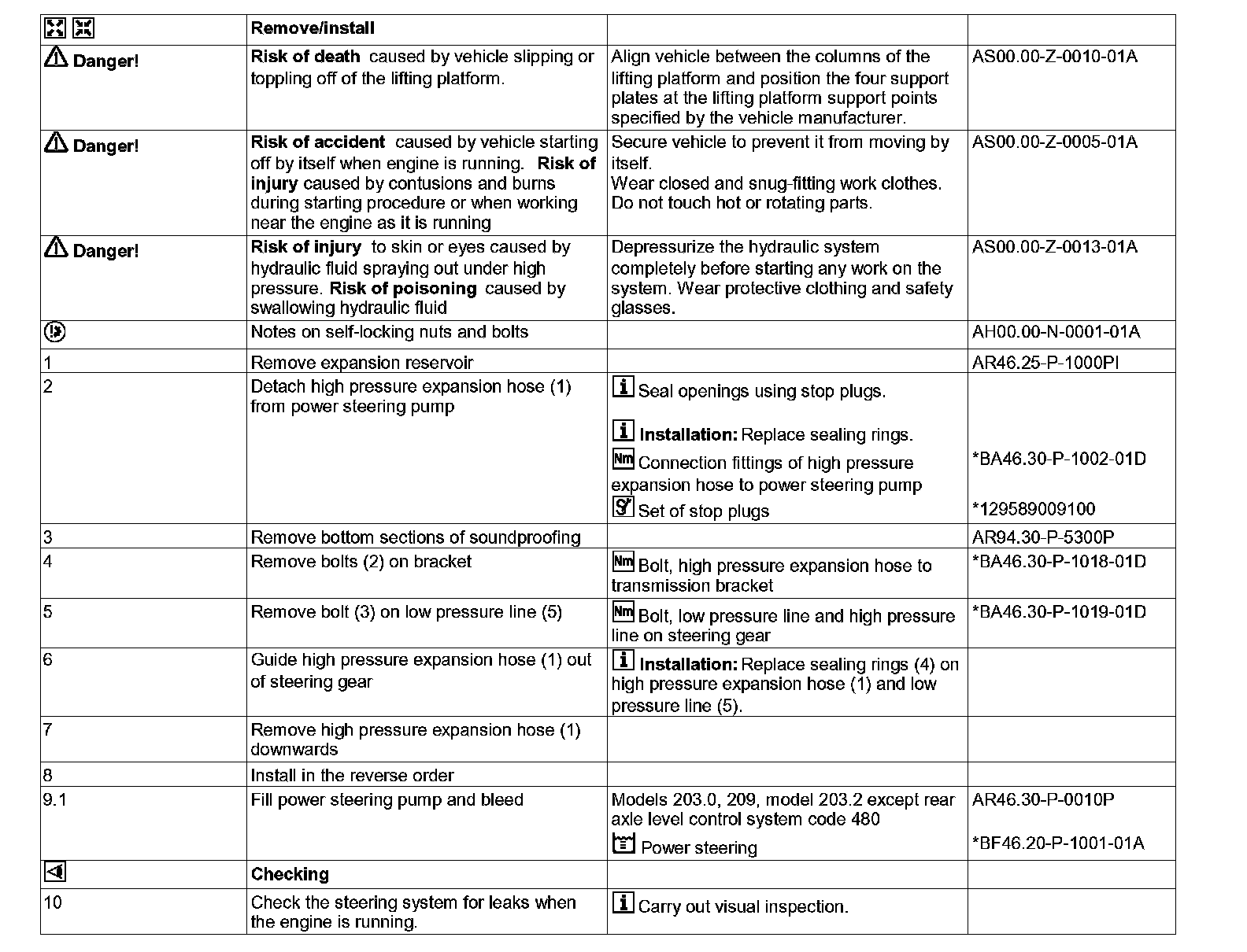 AR46.25-P-3016PI Remove/Install High-pressure Expansion Hose of Power Steering