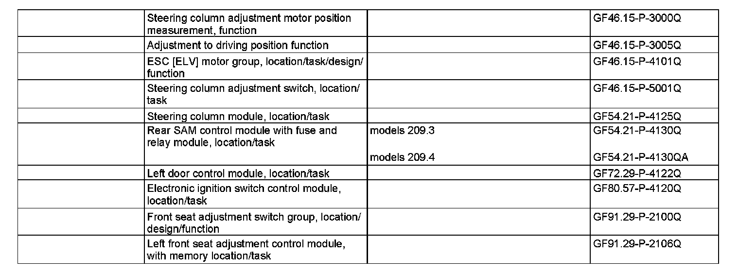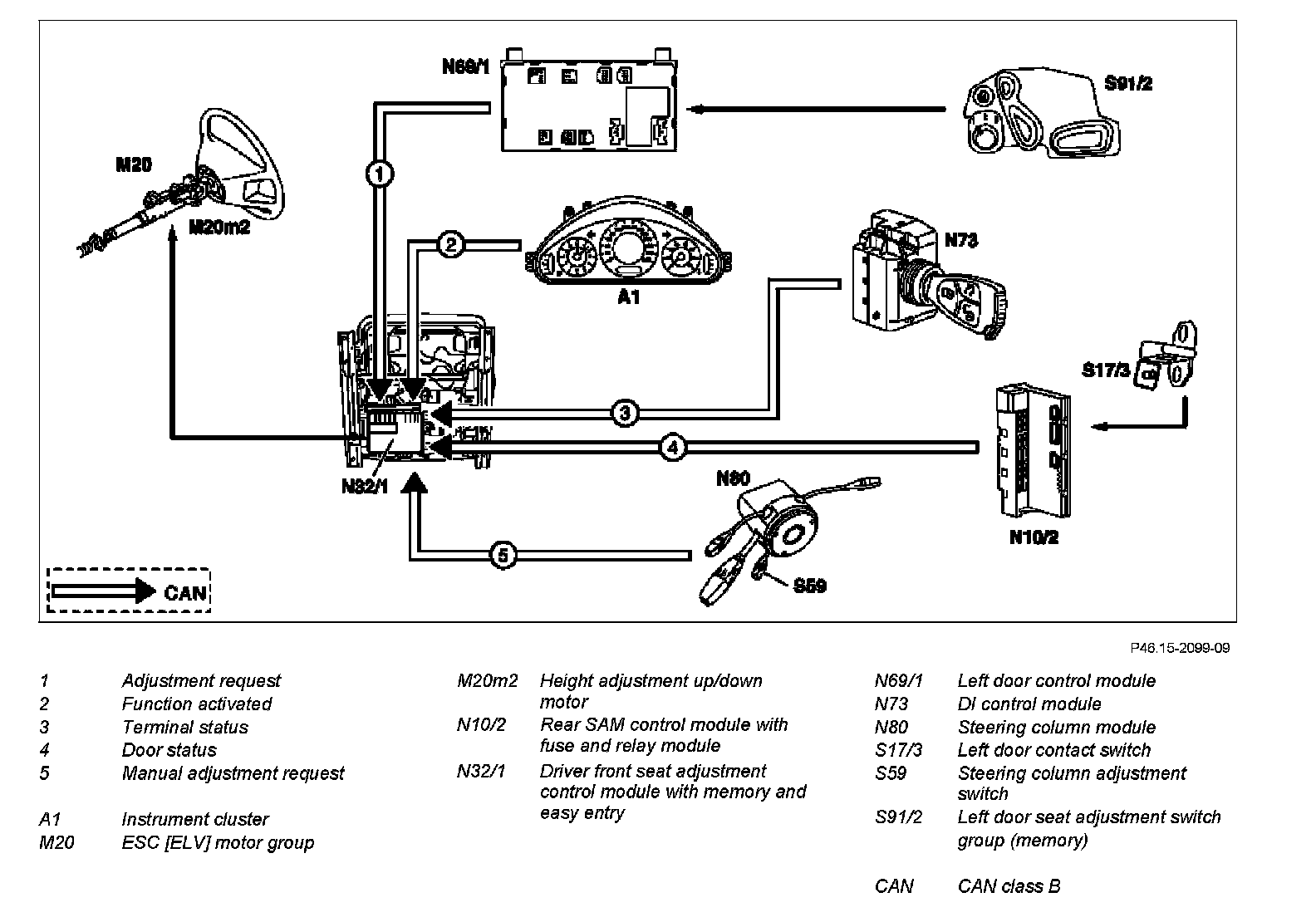 For this the following information is read out and processed via the front seat adjustment control module with memory and easy entry, driver (N32/1) via CAN class B: