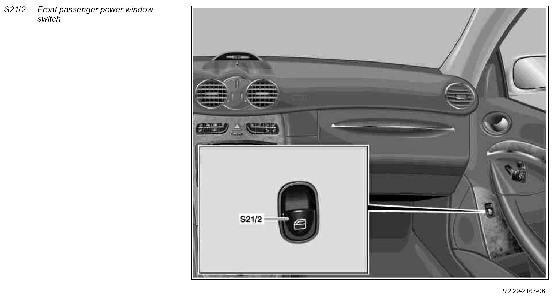 GF72.29-P-4119Q Front Passenger Power Window Switch, Location/Task