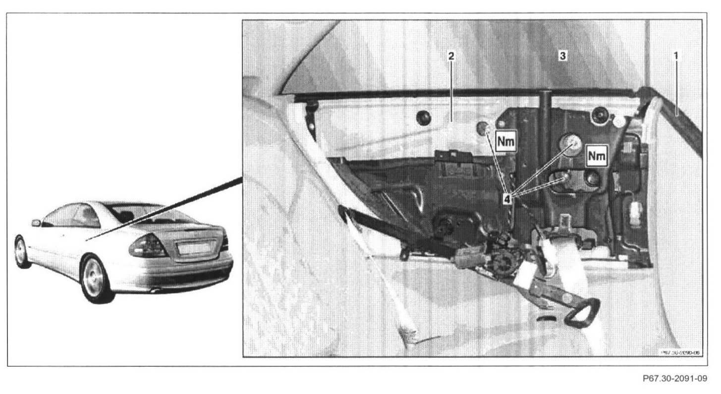 - Screw, rear side window to window lift mechanism = 9 Nm