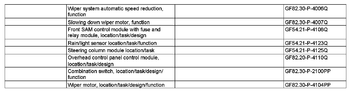 The intermittent pause is dependent on the amount of moisture present on the windshield. For this purpose, the front SAM control module with fuse and relay module (N10/1) evaluates the data from the rain/light sensor (B38/2).