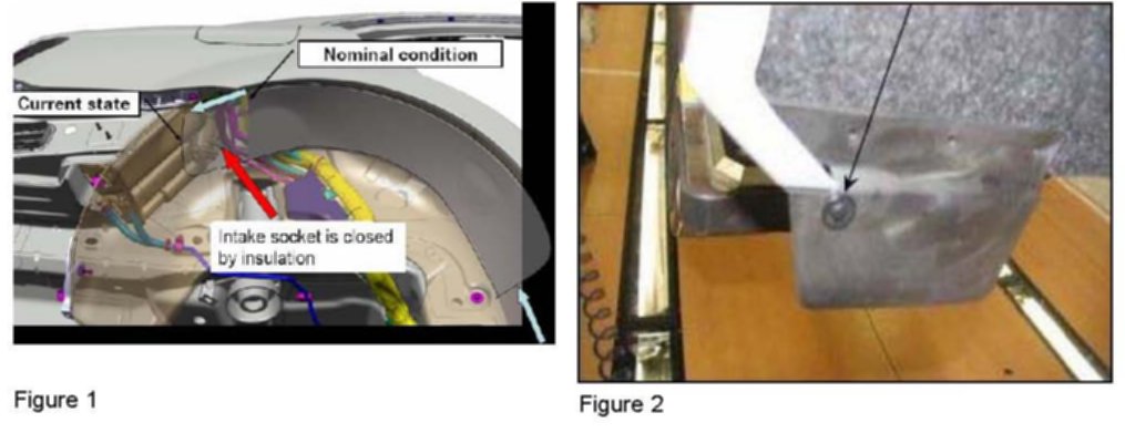 If you receive customer reports in the above model vehicles that the check engine light is illuminated with DTC code 0954, this may be caused by the incorrect positioning of the absorber which would block the ventilation hole of the charcoal canister (Figure 1) and cause the check engine lamp to illuminate. To resolve, check the position of the absorber in the rear right side wheel house and correct as follows.