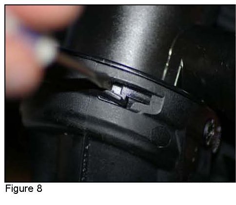 In order to remove the shut off valve from the canister, the locking tab (Figure 8) must be opened and the valve rotated prior to any attempt at removing the valve from the canister. Failure to do so will result in damage to the charcoal canister assembly.
