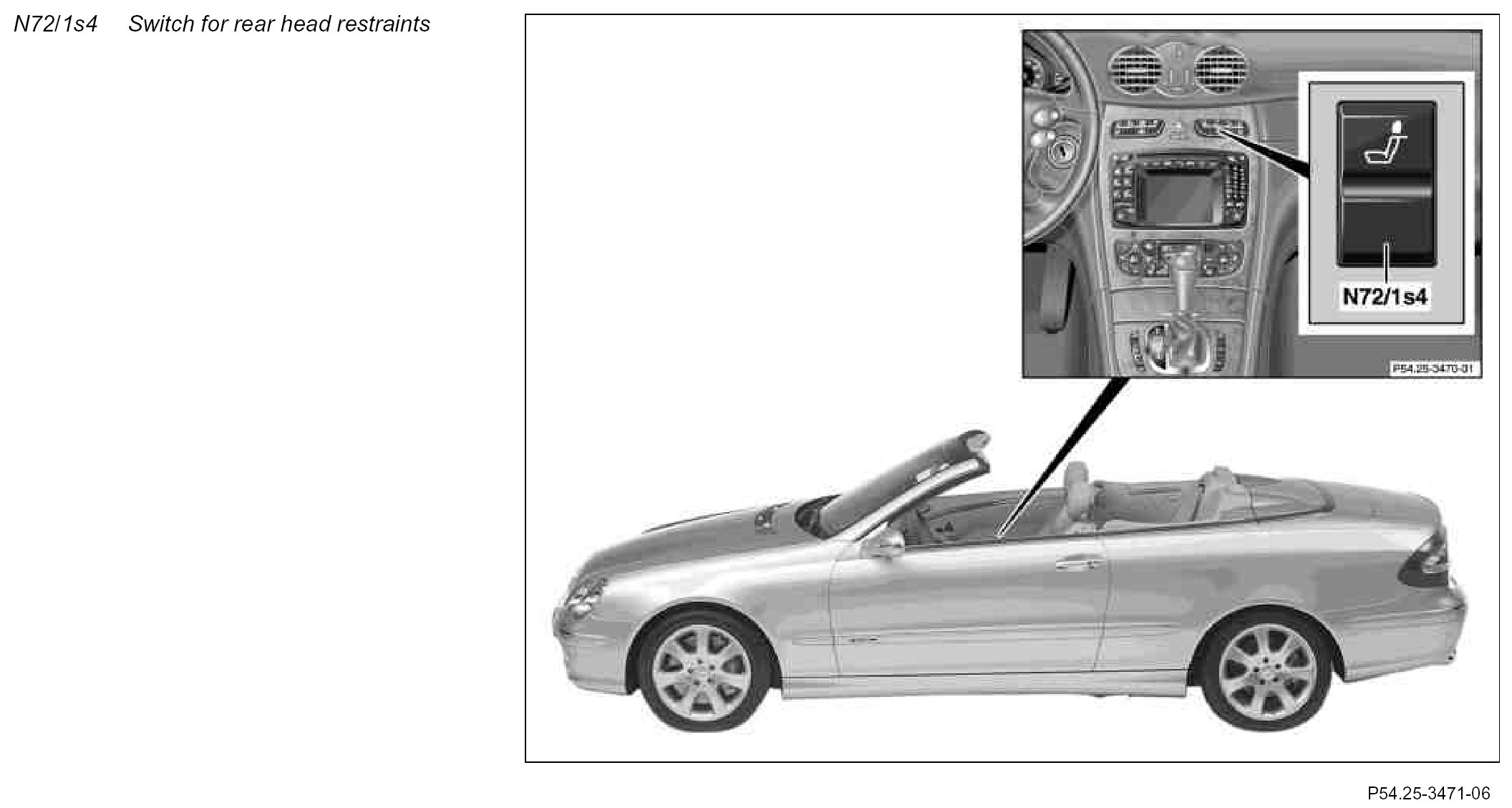 GF91.16-P-4101QA Switch For Retractable Rear Head Restraints, Location/Task/Design/Function