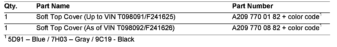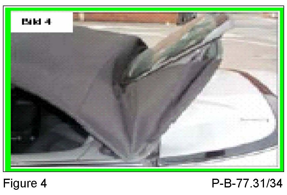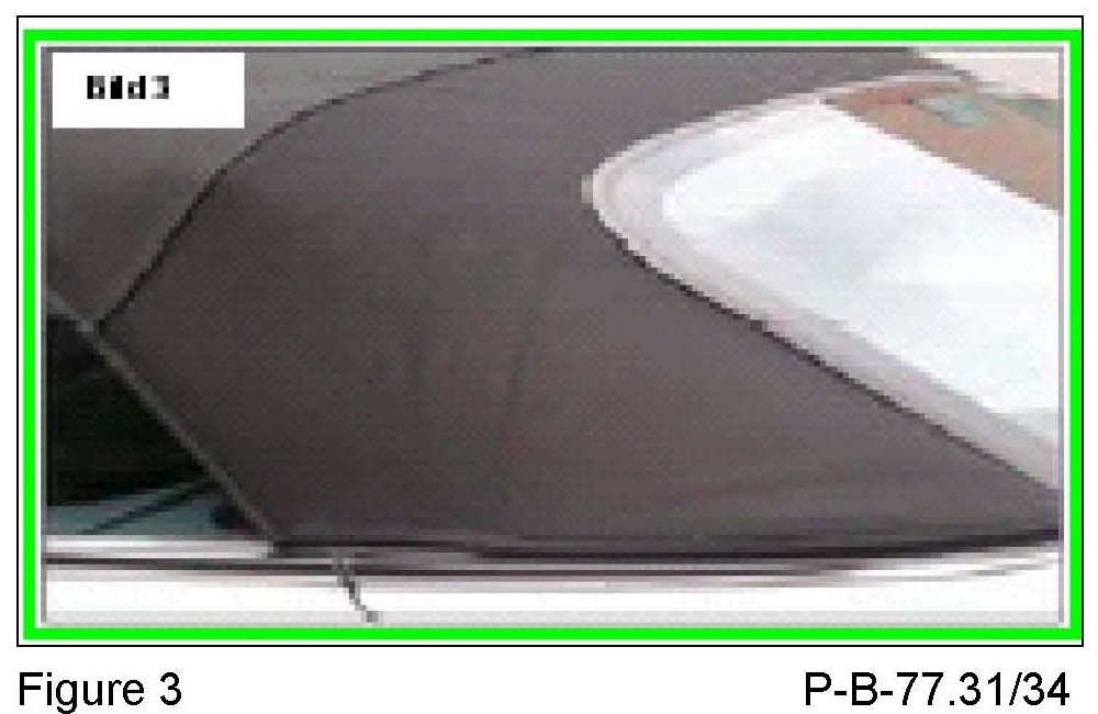 1. Creases in the side area of the soft top cover (Figures 1, 2, 3 and 4) represent normal signs of use from opening and closing the roof and the influence of dirt. Do not replace the soft top cover. These signs of use can be reduced by regular care using plenty of water and a soft brush.