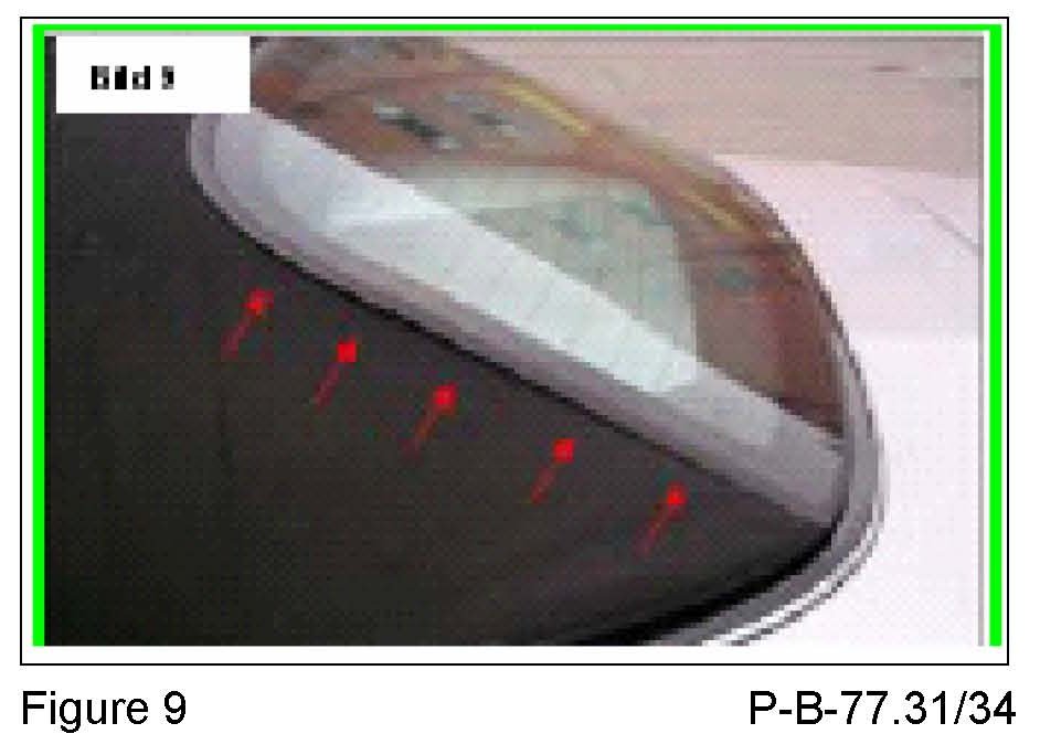 5. The gap between the soft top cover and the rear window (Figure 9) has increased. A specified gap progression is required to insure smooth operation for the opening and closing sequence. Do not attempt to correct or replace the soft top cover.