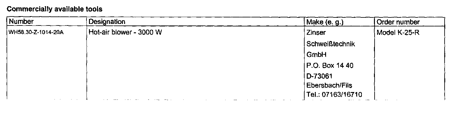 Hot air blower - 3000 W - See Commercially Available Tools below